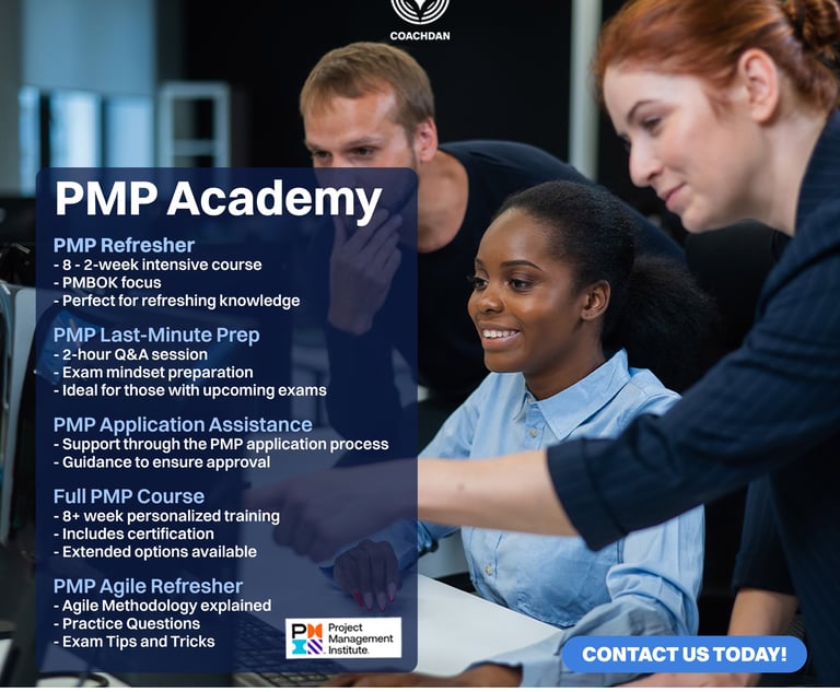 PMP Refresher: Strengthen your knowledge with a two-week crash course tailored for individuals who completed the "35 contact hours" but need a refresher or targeted PMBOK guidance.